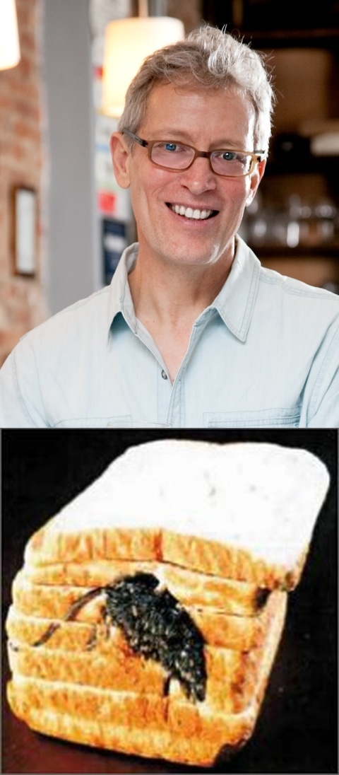 Me, I would just as soon not know that my ham and cheese sandwich contains extract from the inner mucosa of the fourth stomach of slaughtered unweaned calves, flesh from tormented pigs forced to live in their own cow-hornless feces and Exorcist-quality vomit, and that the FDA allows an average of one rodent hair and 75 insect parts per fifty grams of wheat flour, which commercial bakers are pointedly not required to list as an ingredient.