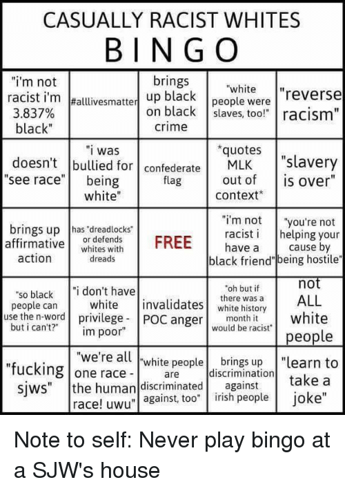 However, a chance to stir up a little shit within your own tribe? Golden. It’s like those self-effacing ‘Casually Racist White People’ memes that are essentially white people mocking other white people for their subconscious racism, thus elevating their own non racist status to ‘super not racist’ because they can recognize this foible in others.